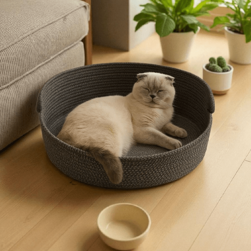 Halat İp Kedi Mama Paspası – 47×33 cm Yıkanabilir Mama Matı