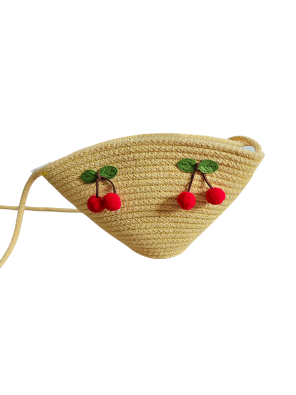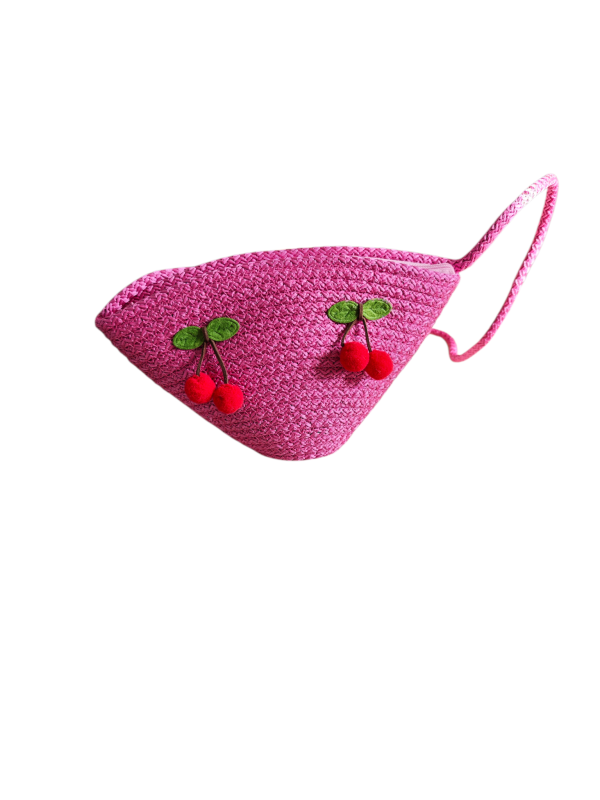 El Yapımı Kiraz Detaylı Örgü Omuz Çantası